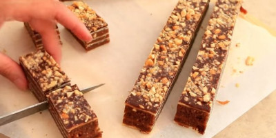 U mleku rastopiti sve gore navedene sastojke, preliti preko keksa, dodati polovinu krupno mlevenog kikirikija, izmešati i ostaviti par minuta da se prohladi. Premazivati kore, kolač blago pritisnuti i ostaviti sat vremena u frižideru. Preliti rastopljenom čokoladom, posuti kikirikijem i ostaviti do sutradan u frižideru. Prijatno!