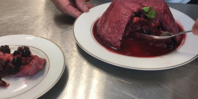U tiganj stavite višnje sa šećerom. Kada višnje puste sok dodajte jagode. Kada jagode puste sok dodajte kupine. Zatim borovnice, kratko kuvajte i na kraju dodajte maline. Kad dodate maline isključite šporet i ostavite tiganj na vreloj ringli. Posle par minuta sklonite i dodajte ekstrakt vanile. Procedite voće, ali sačuvajte tečnost. Isecite ivice tost hlebu. Uzmite posudu za puding (treba da bude okrugla sa ravnim dnom). Jednu sredinu tosta isecite u obliku kruga od voća i stavite na dno posude. Dva ili tri parčeta tosta isecite u obliku trougla, ali sa ravnim vrhom umesto špica. Obložite ivice posude tim tostom. Ubacite voće u sredinu posude (lepo napunite), a zatim zatvorite sa hlebom koji ste isekli u obliku pravouganika. Svako parče hleba umočite u tečnost od voća. Stvaite tanjirić na vrh posude da malo pritisnete smesu. Preko toga stavite teglicu džema. Ostavite u frižideru nekih 6 sati (može i preko noći). Nakon tog vremena prebacite na tanjir i vaš puding je gotov. Ako vam je ostalo tečnosti od voća možete njom preliti puding.