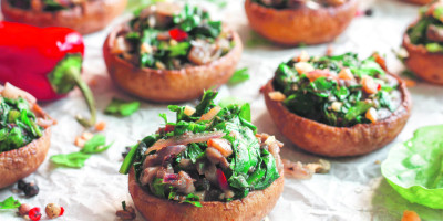 Pečurke najpre napunite slaninom i belim lukom, a onda dodajte biber i origano po ukusu. Preko toga stavite izrendani kačkavalj i pomalo iseckanog peršuna.
