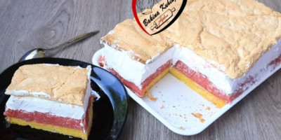 Umutiti belanca sa šećerom, dodati gustin, izjednačiti i peći na 170 stepeni oko 90 min.
