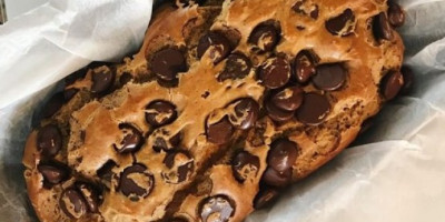 Kalup nauljite i obložite pek papirom. Testo izlijte u kalup, pa dodajte sitno izlomljene komadiće čokolade u količini u kojoj želite. Po želji možete dodati i druge sastojke poput voća.