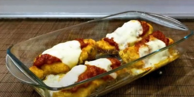 Umutite jaja, pa dodajte beli luk, peršun i so. Meso uvaljajte u marinadu i ostavite 15-30 minuta. Spremite smesu za pohavanje. Pomešajte prezle, beli luk u prahu i parmezan. Uvaljajte meso u poh. Zatim pržite na masti, dok ne dobiju žutu boju, odnosno dok ne budu gotove. Stavite gotovo meso u vatrostalnu posudu. Napravite sos tako što ćete izdinstati luk, zatim dodajte beli luk, paradajz pire, so, biber i malo na vrh kašike šećera. Kratko dinstajte, pa dodajte italijansku mešavinu začina. Sipajte sos preko mesa, pa stavite preko komade mocarele. Pecite u rerni na 250 stepeni nekih 15 minuta ili dok se mocarela ne istopi.