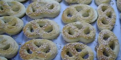 Gotove perece premažite umućenim belancetom, posolite i pospite susamom. Ostatke testa opet premesiti, razvaljati, iseći štapiće i ređati u pleh.