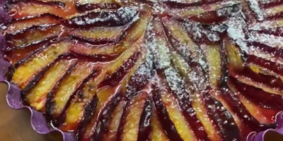 Umutite puter, žumanca, šećer, vanilin šećer i prstohvat soli. Dodajte brašno i sjedinite testo. Razvucite po kalupu za tart. Isecite šljive u obliku polu meseca i ređajte u krug dok ne ispunite sve. Šljive pospite vanilin šećerom i pecite na 200°C 20-25 minuta. Po želji posuti prah šećerom i bademovim listićima.