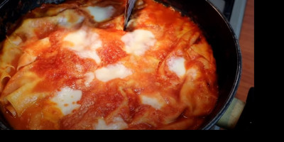 Sastojci za 4 osobe: 250 grama sveže testenine za lazanje; 600 ml sosa od paradajza; 300 grama mocarele ili drugog sira; 25 grama rendanog sira (parmezan); 1 čen belog luka, malo maslinovog ulja, malo soli, bosiljka, bibera.