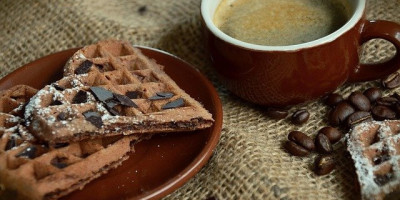 Pomešati sa smesom od brašna, pa dodati i omekšali maslac. Sjediniti, pa peći u aparatu za vafle dok ne dobiju lepu boju. Poslužiti sa medom i orasima.