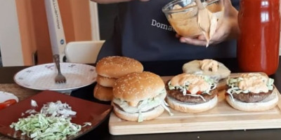 Zemičke prepoloviti, premazati kečapom i majonezom, odozgo poređati po dve pljeskavice, na kolutove isečen paradajz, crni luk i listove zelene salate, pa odmah poslužiti.