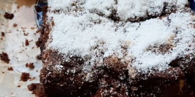 Umutite jaja sa šećerom, pa dodajte brašno sa praškom za pecivo, ulje, mleko, rastopljenu čokoladu, suvo grožđe, seckane orahe i sve dobro izjednačite. Pleh podmažite, pa izlijte kolač i pecite na 200°C 30-40 min. Pečen kolač isecite na kocke. Skuvajte mleko sa vanilin šećerom, čokoladom i šećerom po želji, pa ohladite. Prelijte kolač da upije, pa pospite kokosom.