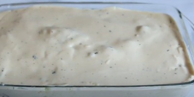 Šnicle ređajte u posudu u kojoj ćete ih peći. Zatim u tiganj gde ste pekli meso stavite maslac. Kada se rastopi i zagreje, dodajte brašno i mešajte sve vreme. Kada se sve sjedini, pržite oko minut, pa dodajte krem supu sa pečurkama. Zatim dodajte, malo po malo, litar mleka i neprestano mešajte. Kuvajte oko 10 minuta dok se sos ne zgusne, mešajući sve vreme, pa prelijte preko mesa. Prekrijte posudu folijom i pecite sat vremena u rerni zagrejanoj na 200 stepeni. Onda skinite foliju i pecite još 15 minuta. Izvadite iz rerne i preko stavite rendani kačkavalj (ako želite).