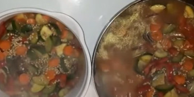 Posoliti i pobiberiti, te mešati dok meso ne dobije lepu boju. Heljdu isprati pod mlazom hladne vode, dodati u tiganj, naliti vodom da ogrezne, pa smanjiti vatru i krčkati pola sata (po potrebi dolivati još vode).