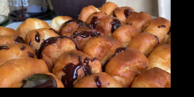 U toplo mleko sipajte kvasac i šećer, promešajte i ostavite da se kvasac aktivira. Dodajte ulje i toplu vodu, promešajte i postepeno dodajte brašno, pa stavite so. Umesite glatko testo. Odvojite jufkice i ređajte ih na štapiće za ražnjić. Pržite u vrelom ulju, sa svih strana. Preko sipajte tečnu čokoladu ili nešto po vašoj želji.