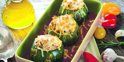 Mladim tikvicama oljuštiti koru, pa ih iseći na deblje kolutove i s jedne strane napraviti udubljenje.