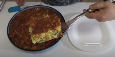 Mešavinu sastojaka izlijete u podmazanu tepsiju (26cm.) poravnate i preko dodate 200 grama narendanog kačkavalja. Pecite u zagrejanoj rerni na 200c.oko 35 do 40 minuta, ali u međuvremenu lagano smanjite temperaturu na 180c.