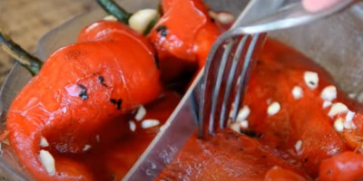 Ohlađene paprike oljuštiti (po želji, ukloniti peteljke), izbockati viljuškom i složiti u činiju za serviranje. Mogu se koristiti i pečene paprike iz zamrzivača, koje je neophodno dobro ocediti.