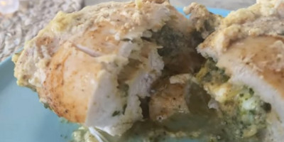 Piletinu lepo začinite. U senf dodajte sveži ruzmarin. Premažite preko piletine, zatim dodajte pire od spanaća i gorgonzolu. Uvijte u rolnice. Preliv umutite i sipajte preko piletine. Pecite na 200°C 25-30 minuta.