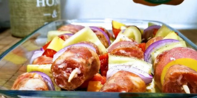 Isecite povrće na kockice ili nešto sličnog oblika i slične veličine. Stavite redosledom kojim želite na štapić za ražnjiće, ostatak povrća stavite u nauljen pleh. Dodajte preko ražnjiće, posolite, pobiberite i dodajte mešavinu italijanskog začina. Preko toga sipajte bujon ili vino. Pecite na 180 c -60 minuta poklopljeno i još 15 minuta otklopljeno.Izbledirajte ostatke u plehu i prelijte preko ražnjića.