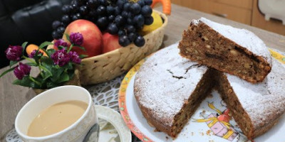 Posuti prah šečerom seći ohladjen..Fantastičan uz kafu čaj i druženja...Deca obožavaju Može ići odozgo prelivena čokolada..