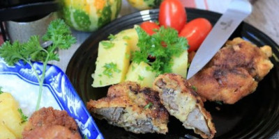 Džigerice posoliti, dodati granule belog lika i bibera pa izmešati. Uvaljati u brašno, obilno okupati u jajima koje ste izmutili i malo posolili, a zatim u prezle. Pržiti u dubokom ulju da porumene sa jedne i druge strane. Poklopiti kod prženja, jer prskaju i vaditi na papirnu salvetu. Servirati uz kuvan krompir.