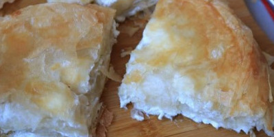 Kad se utroši sav sir prebace se ivice kora koje vise i polopi se sa još dve kore koje se poulje i poprskaju vodom i ušuskaju sa strane tepsije.