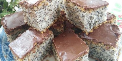 Vruć kolač preliti hladnim mlekom i preko toga rastopljenom čokoladom.