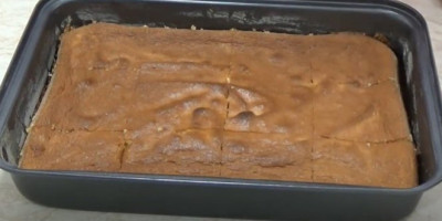 3. Smesu ulijte u pleh, rasporedite je ravnomerno i pecite 30-35 minuta. Isecite na kvadrate dok je kolač još topao, pa ostavite da se u potpunosti ohladi.