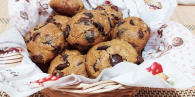 Umutiti maslac sa šećerom u prahu dodati vanilin šećer, jaje brašno i prašak za pecivo. Dodati (čokoladni čips) ili seckanu čokoladu zatim čokoladno suvo groždje i seckane orahe.