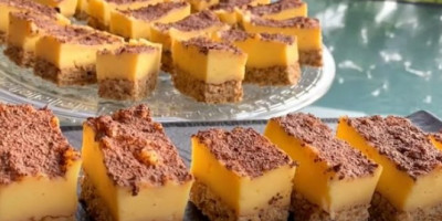 Taj dobijeni fil stavimo preko kore koja se u međuvremenu ispekla. Pospite rendanom čokoladom. Ostavite da se prohladi pa secite i poslužite.