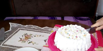 U drugu posudu pomešati brašno, prašak za pecivo i pečeni kokos, postepeno dodati žumanca i kratko mutiti mikserom. Belanca umutiti u čvrst sneg dodati umućenim žumancima, drvenom varjačom lagano promešati i sjediniti masu.
