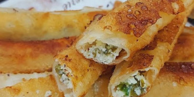 Koru preseći po širini. Sir izdrobite dodajte seckan luk ili bareni seckan spanać može i jedno jaje.