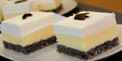Nauljite i pospite brašnom tepsiju veličine 38×25 cm. Sipajte dobijenu smesu i pecite u zagrejanoj rerni na 18 stepeni 20 minuta.
