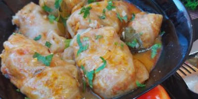 Ako želite dodajte suvog začina. Sve izjednačiti. Listove kupusa oprati ako su prekiseli i skinuti onaj tvrdi deo na slistu. Ubaciti punu kašiku nadeva i zavijati sarme.