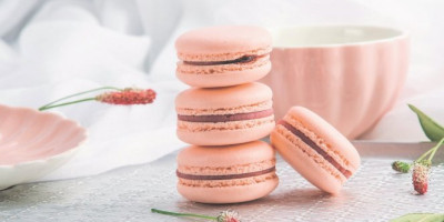 Prvo sameljite (blanširane bez ljuske) bademe i prosejte ih. Prosejte i šećer u prahu. Umutite belanca, dodajte šećer, boju u prahu, potom bademe i šećer u prahu koje možete da mešate varjačom. Spremite dva pleha i obložite ih papirom za pečenje. Smesu stavite u špric kesu kojoj ste odsekli vrh, išpricajte kolačiće i ostavite ih da se suše makar 40 minuta. Pecite ih 150 stepeni 13-15 minuta. Za fil zagrejte slatku pavlaku i rum do vrenja, pa ih dodajte u posudu sa izlomljenom čokoladom. Poklopite i ostavite da se otopi. Kad se prohladi, sipajte u špric i nanosite na makaronse.