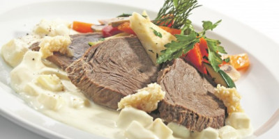 Meso staviti u vruću vodu (biće sočnije), dodati očišćeno i isečeno povrće, so, biber i list celera. Kuvati na laganoj vatri oko 2 sata i po želji dosoliti. U posebnom sudu sipati kiselu pavlaku i ren i malo prokuvati, dodati sok od limuna i vodu i kuvati 5 minuta. Kuvano meso izvaditi, iseći i poslužiti sa kuvanim povrćem i sosom od rena. Napomena: za bogatsvo ukusa u sos možete da dodate malo rendane ili na kockice isečene jabuke.