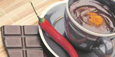 Pomešajte narendanu čokoladu, kakao i pola šolje mleka u metalnoj činiji. Uključite šporet na najnižu temperaturu. Tek onda stavite činiju na ringlu i mešajte lagano, sve dok se čokolada ne istopi u potpunosti. Zatim dodajte ostatak mleka i so. Mešajte, a zatim dodajte šećer. Nastavite sa mešanjem sve dok se smesa ne sjedini. Dodajte pola kašičice cimeta i prstohvat čili paprike. Za ceo postupak potrebno je oko 10 minuta, a vrhunski poslastičari smatraju da je kombinacija čili paprike i čokolade nepogrešiva.