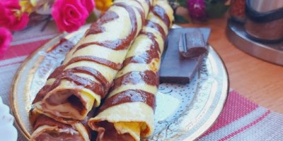 U kesu sipati čokoladni deo, probušiti malu rupicu na ćošku kese pa na palačinku koja se peče praviti figure krenuti od centra ili do ivice kako Vam je lakše. Čim se malo zapeče okrenuti.