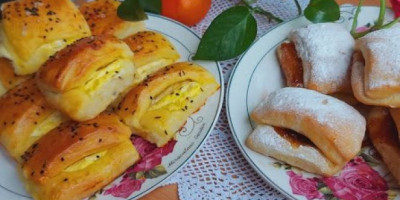 Testo iseći na kvadrate pa u sredinu ubaciti po kažičicu sira i preklopiti kao salčiće. Ostaviti par komada pa staviti kao nadev džema.