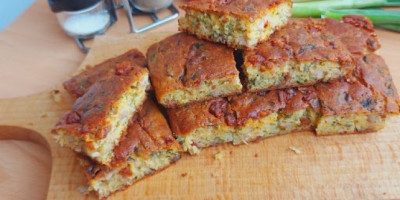 Dodati biber i so pa ubaciti u brašno. Sve dobro izjednačiti. Pleh veličine 35x25 podmazati i ssipati testo. Peći na 210 stepeni C 50-60 min. Prohladjeno seći..