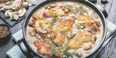po 300 g belog mesa i šampinjona