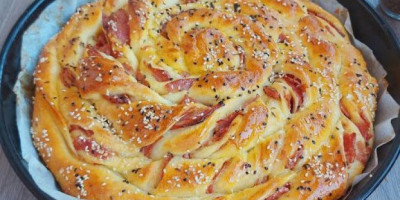 Tako iraditi sa ostatkom testa. Pokriti i odmoriti pa premazati žumancetom u koji ste dodali 1 kašiku ulja. Po želji posuti susamom .. Peći na 210 stepeni C oko 15 min pa smanjiti na 180 i peći ukupno 40-45 min.pokriveno.