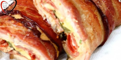 Istanjiti tučkom za meso i filovati pripremljenim pestom. Urolati i pričvrstiti mesarskim kanapom.
