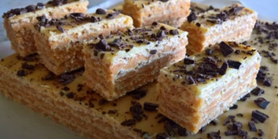 Za glazuru otopite belu čokoladu i slatku pavlaku. Premažite oblandu. Dekorišite seckanom crnom čokoladom dok se glazura još nije stegla.