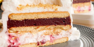 Kalup 30×10 cm, obložite streč folijom. Na dno poređajte red plazma keksa, koji ste predhodo umakali u mleko. Preko stavite vruć fil sa višnjama i čokoladom. Zatim red plazma keksa, koji ste predhodo umakali u mleko, pa fil sa Višnjama i šlagom. Na kraju stavite plazma keks, koji ste predhodo umakali u mleko.