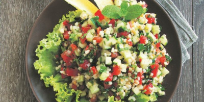 Bulgur stavite u činiju i prelijte ključalom vodom. Dok se bulgur natapa, iseckajte sitno peršun zajedno sa tankim delovima peteljki. Mladi luk iseckajte što sitnije. Paradajz očistite od semenki, iscedite i iseckajte na sitne kockice. Kada je bulgur upio svu tečnost, izmešajte sve sastojke. Služite na listovima zelene salate kao predjelo ili pak prilog uz meso, sireve...