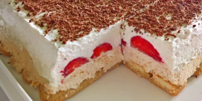 U jednu polovinu umućene slatke pavlake dodajte kiselu pavlaku sa šećerom i sjedinite, a u drugu dodajte mlevenu plazmu i otopljenu belu čokoladu, pa sjedinite. Preko piškota premažite sloj slatke pavlake sa plazmom i lepo rasporedite, pa poređajte jagode isečene na polovine ili četvrtine (u zavisnosti od veličine). Zatim ide sloj slatke pavlake sa kiselom i belom čokoladom. Lepo rasporedite. Dekorišite rendanom čokoladom.