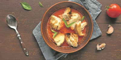 Iseckajte crni i beli luk, malo posolite i izgnječite, dodajte seckani paradajz, papriku, krastavac, posolite i blago izgnječite. Sipajte maslinovo ulje, dodajte maslinke i ostavite da odstoji pola sata. Iskidajte bajat hleb na komade, potopite i izmešajte. Ova čorba mora malo da odstoji, jede se hladna, a na kraju se prelije sa još malo maslinovog ulja, po želji se doda origano i parmezan.