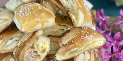 Priprema: Aktivirati kvasac, nakon toga umesiti testo. Ostaviti da odmori i praviti oblike, dodavati premaz i sir. Premazati žumancem i posuti susamom. Peći na 180 stepeni 25min. Prijatno!
