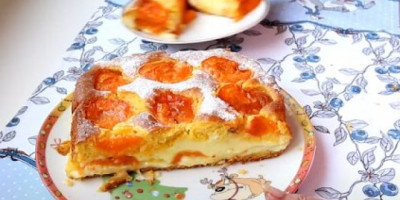 Preko kajsija sipati drugu polovinu pudinga pa ostatak testa. U testo rasporediti ostatak kajsija. Peći na 200 stepeni oko 50-55 min.
