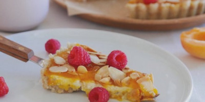Umutite jaja sa šećerom i piterom. Dodajte brašno sa praškom za pecivo i sipajte sveže mleko. Treba da dobijete testo, malo gušće nego za palačinke. Sipajte smesu u nauljeni pleh, poređajte naseckane kajsije ili breskve odozgo. Ispecite kolač na umerenoj temperaturi. Kada izvadite kolač, pospite ga šećerom u prahu, koji ste izmešali sa vanilom. Dodajte listiće badema i maline po želji.