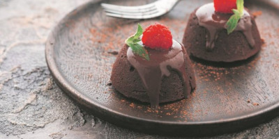 Na pari otopite čokoladu i puter. Jaja umutite sa šećerom i ekstraktom vanile i dodajte čokoladu i puter. Dodajte brašno i sipajte u puterom i brašnom premazane kalupe (možete i obične šolje od keramike). Pecite u prethodno zagrejanoj rerni na 250 stepeni 10 minuta. Važno je da se peče samo 10 minuta i ni minut više ni manje kako bi se došlo do željenog rezultata. Gotov kolač istresite na tanjire i poslužite vruć bez hlađenja uz neko osvežavajuće voće, recimo, maline.