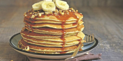 Umutite jaja, banane i mleko, sve dok ne dobijete tečnu masu. Potom dodajte sve suve sastojke i dobro pomešajte, a potom ostavite da odstoji dvadesetak minuta. Zagrejte ulje na tiganju, a potom sipajte po 2,3 kašike smese i pecite na jednoj strani dok se ne pojave balončići, potom pažljivo okrenite i pecite na drugoj strani, na srednjoj vatri.